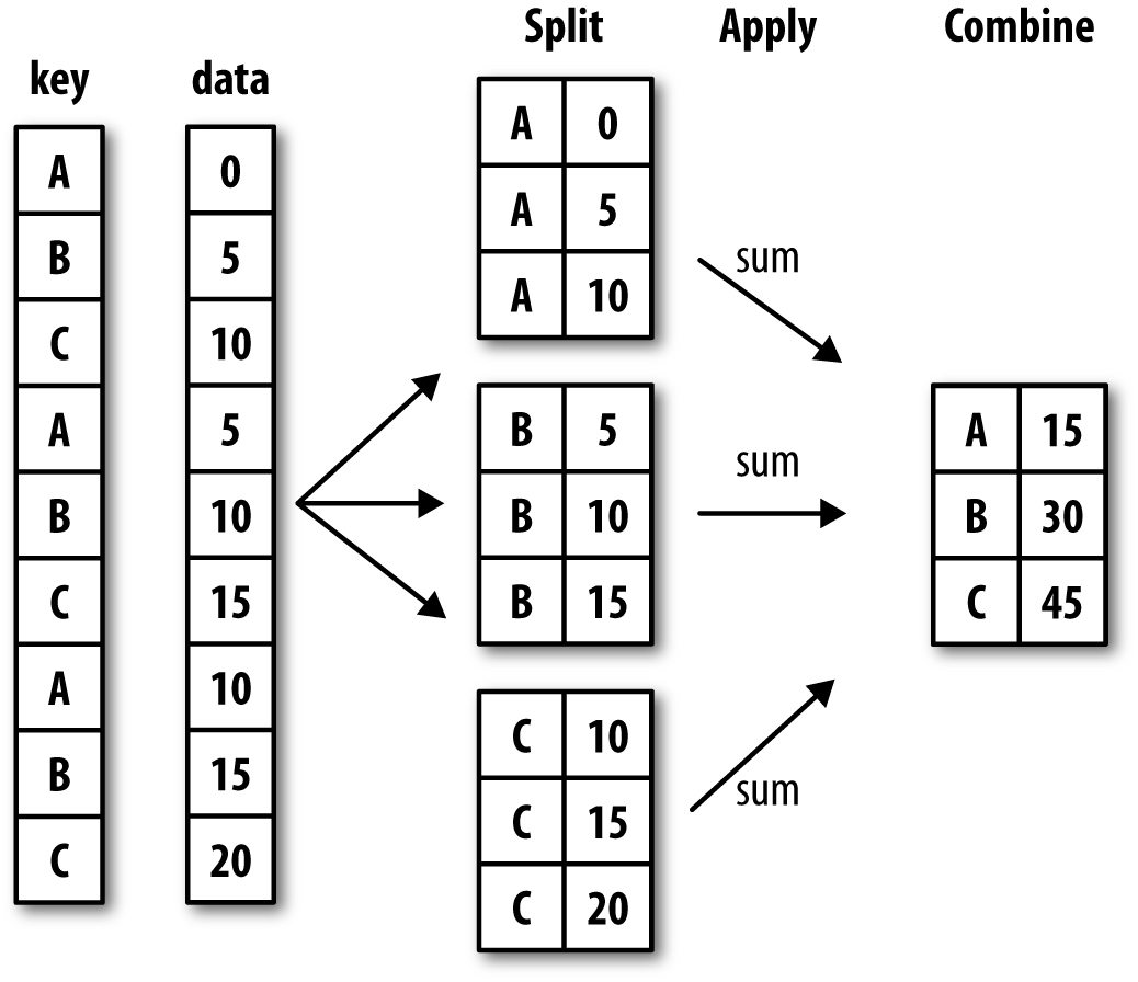 The above figures start to explain the logic of groupby(), but let’s break it down further.