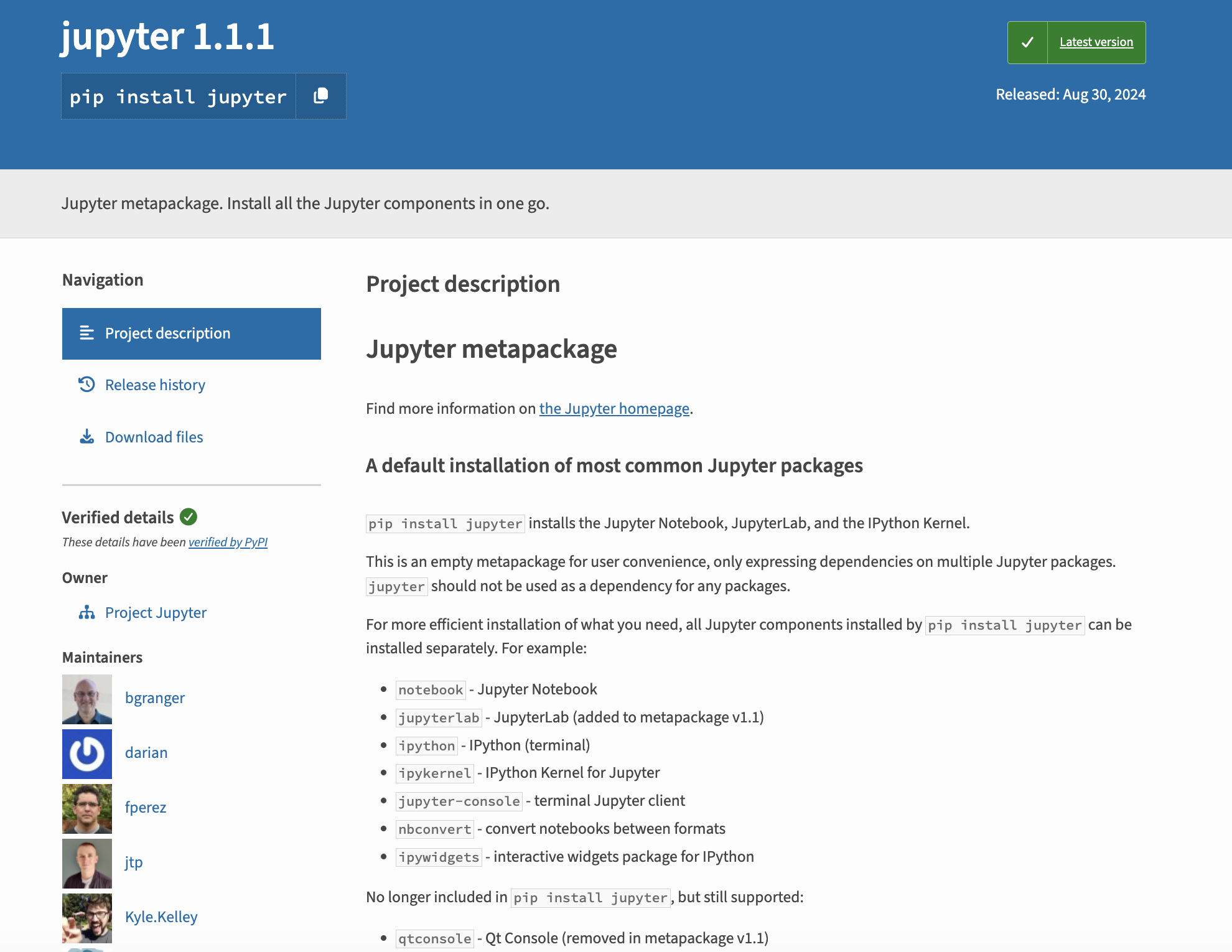 The first step to trying out Jupyter notebooks is to install Jupyter. We can install Jupyter with pip (fyi if you are using anaconda, you already have Jupyter installed). We can find the command to install Jupyter in the documentation here https://jupyter.org/install or in the Python Package Index (PyPI) here https://pypi.org/project/jupyter/.