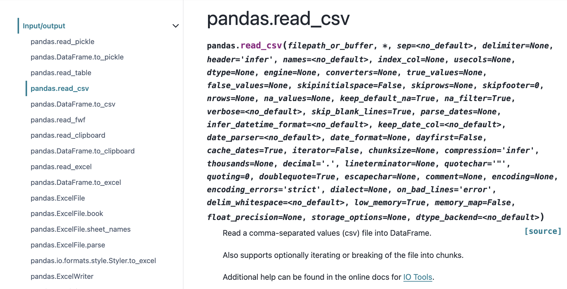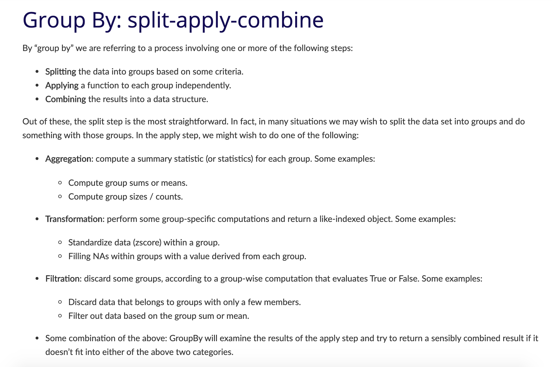 | Pandas method | Explanation |