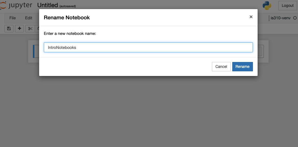 Now currently our notebook is named Untitled, but if we click on that name we can rename it.