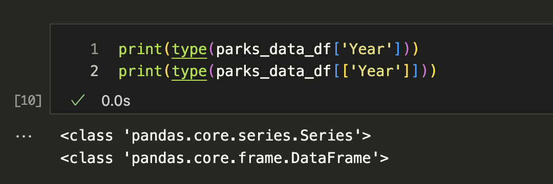 While the columns in the parks_data_df are capitalized, usually we try to keep column names lowercase and use underscores instead of spaces for ease of typing. So let’s try renaming all of the columns programmatically. First, we need to get all the column names using the columns attribute of the DataFrame, which can see is an attribute in the documentation https://pandas.pydata.org/docs/reference/api/pandas.DataFrame.columns.html.
