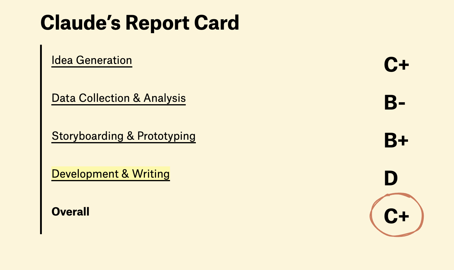 Why did the authors score Claude this way? Do you agree with their assessments? Did you like the Claude story?